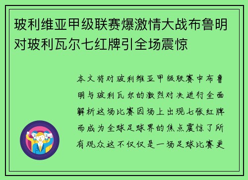 在2025年热刺与一场激烈比赛中的一次意外事件引发了俱乐部内部的广泛争议。贝里瓦尔在比赛中因头部受到猛烈冲击,疑似发生脑震荡,却拒绝了下场治疗的建议,并在场上情绪失控,推搡了前来劝导他的队医。这一事件迅速成为媒体焦点,引发了对于球员身体健康、俱乐部管理以及运动员情绪管理等多方面的讨论。本文将从四个方面详细探讨这一事件,首先分析贝里瓦尔的拒绝下场背后的原因,再探讨他情绪失控的心理动因,随后分析该事件...